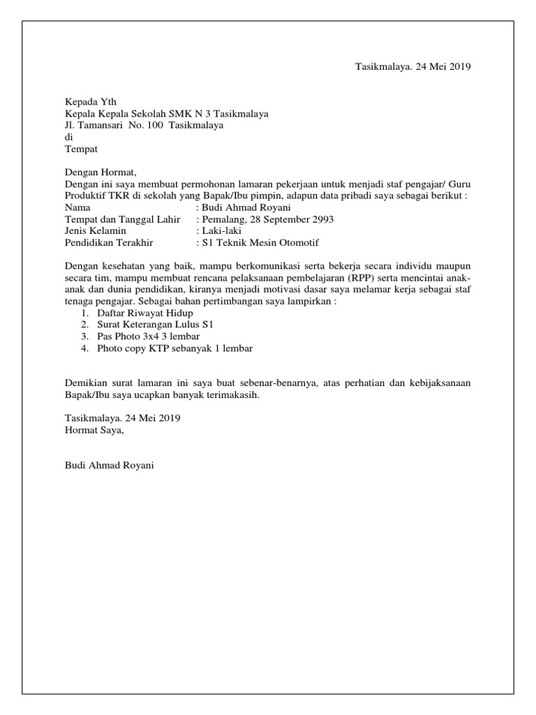 Contoh Surat Lamaran Kerja Guru Smk Pdf